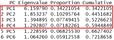 eig <- pca_result$sdev^2 # eigenvalues (= variances of PCs)