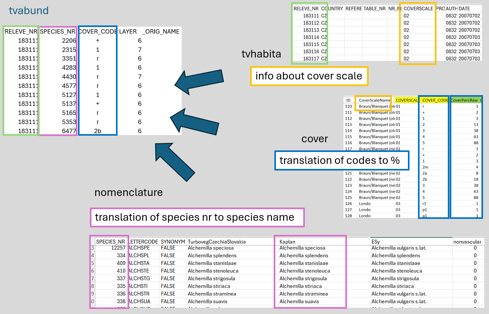 library(janitor) #for unified, easy-to-handle format of variable namesTurboveg to R